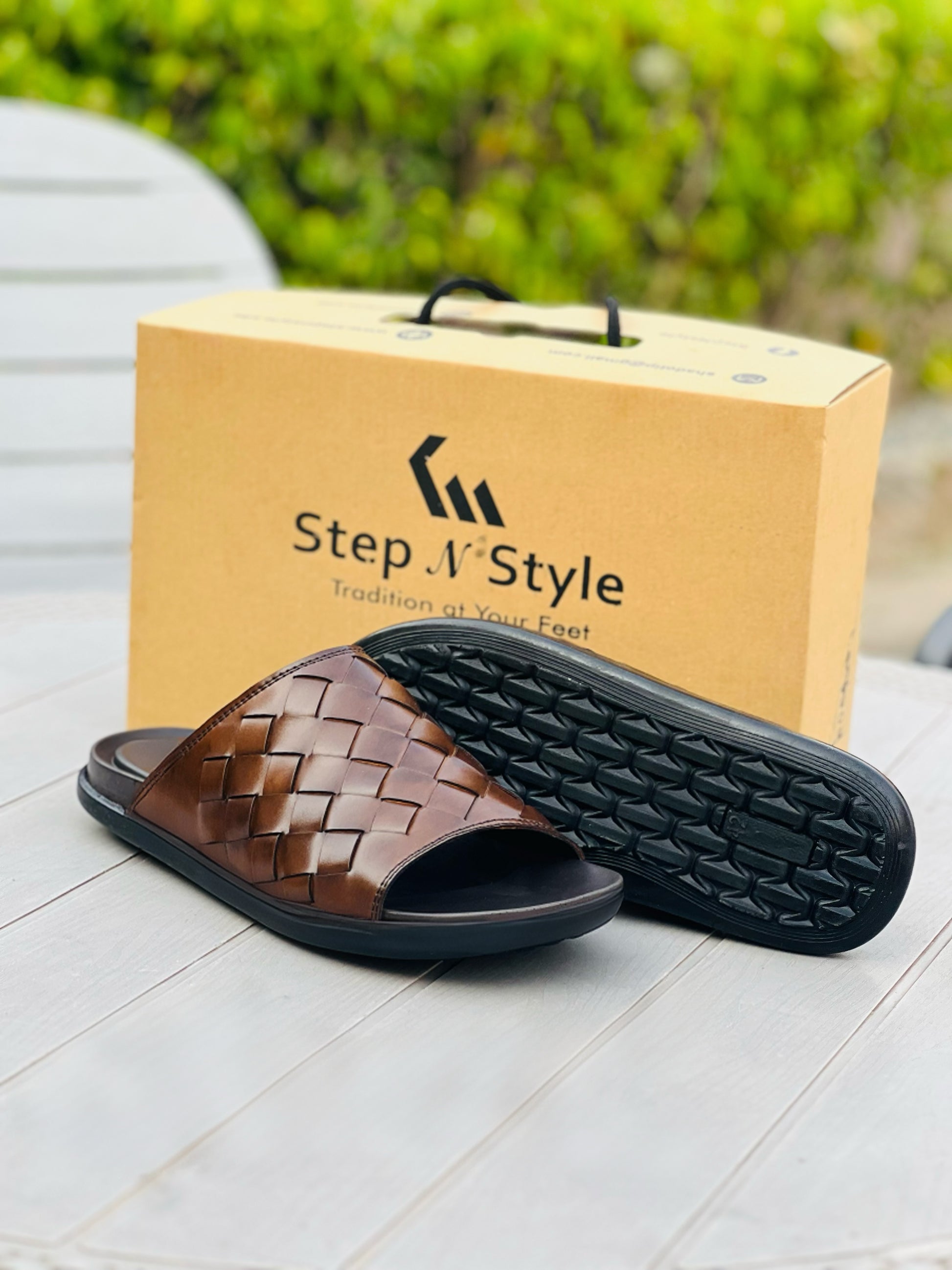 LEATHER BRAIDED BROWN OXF-SLIPPERS